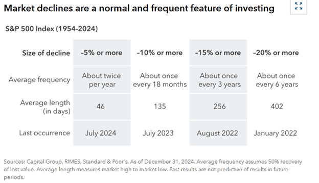 Given the market's elevated valuations and concentration, a correction was inevitable. Markets tend towards mean reversion, though they require a catalyst. It's also worth remembering that 5-10% drawdowns, while uncomfortable, are a regular feature of the market.